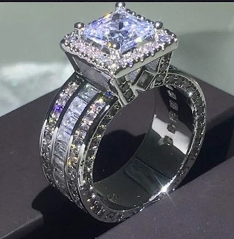 1 review for Super Shining Women Men Fashion Ring Exquisite Silver Color Inlaid Zircon Stones Wedding Rings for Women Engagement Jewelry