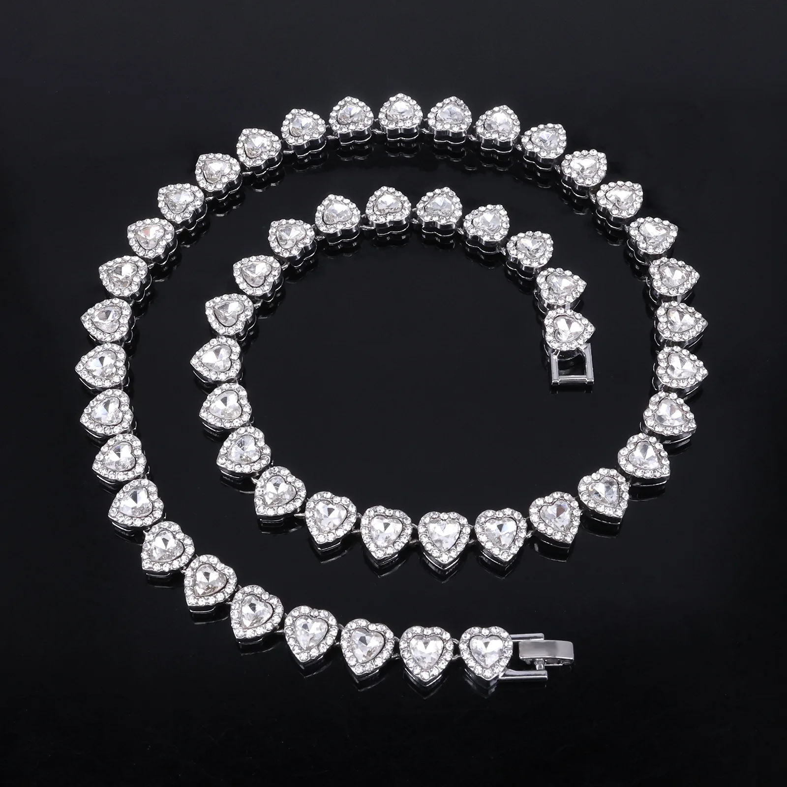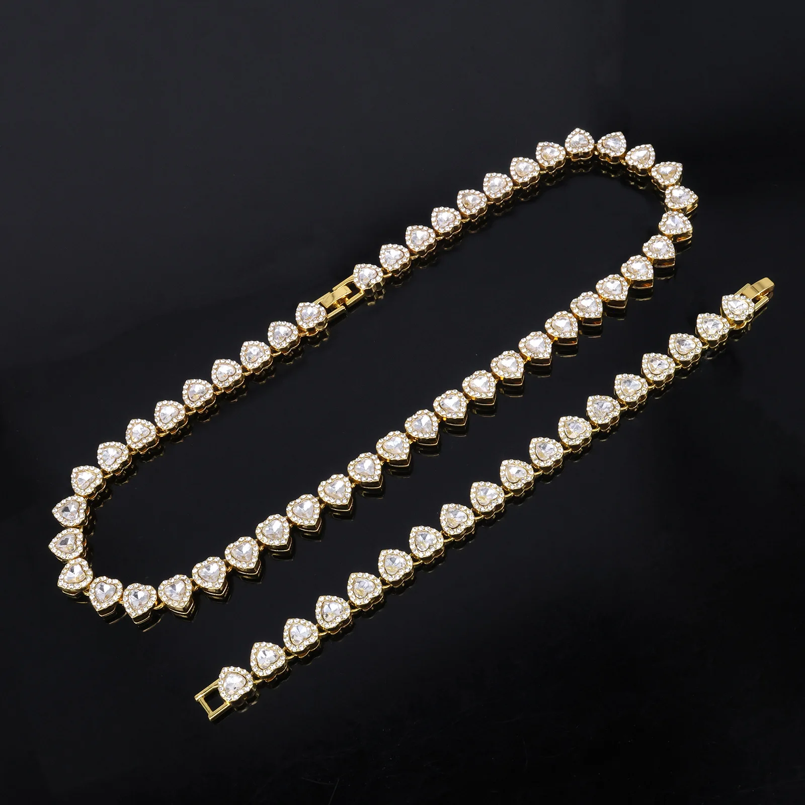 Be the first to review “ZAKOL 45CM New Hip Hop Tennis Chain Bracelet Necklace Shiny Heart Rhinestone CZ Fashion Rock Party Jewelry Set”
